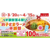 【半額祭第4弾!】お子さまラーメンが驚きの100円(税抜)に!「お子さまラーメン半額祭」3月20日(木・祝)~4月15日(火)で開催決定!