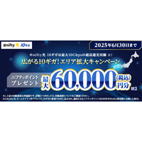 ニフティ、「@nifty光 10ギガ」の新規申込で最大60,000円分(税込)のニフティポイントをプレゼント!「広がる10ギガ!エリア拡大キャンペーン」を実施