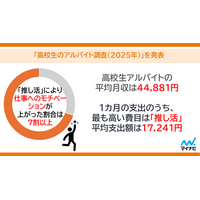 高校生アルバイトの平均月収は44,881円。1カ月の支出のうち、最も高い費目は「推し活」。平均支出額は17,2…