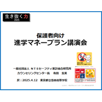 「保護者向けマネープラン講演会」 講演の概要 4月12日(土)、一般社団法人NTSセーフティ…