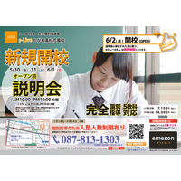 【香川県初開校】東大生を始めとする難関大学生講師が教える「個別指導塾s-Liveかがわ高松花園校」が6月2日に新規開校。小・中学生のご家庭を対象に開校前説明会を3日間開催。