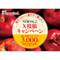 今が旬!ファーマインドのニュージーランド産りんごを「見て」「食べて」「買って」Xに投稿。抽選で電子マネーギフト3,000円分が当たる!【NZ産りんごX投稿キャンペーン】を開催!