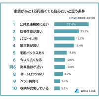 住みたい賃貸物件の条件に関する意識調査 株式会社AlbaLink(本社:東京都江東区、代表取締役:河…