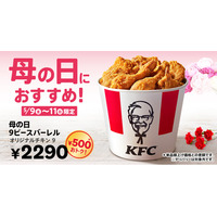 【500円おトク!】母の日はケンタッキーで心あたたまる家族のひとときを♪ オリジナルチキンがたっぷり9ピース詰まった「母の日9ピースバーレル」5月9日(金)から3日間限定販売