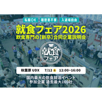 「就食フェア2026」過去最大の100社が参加!国内最大の飲食・レストラン新卒就活イベント! 飲食…