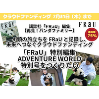 『FRaU ADVENTURE WORLD~再見! パンダファミリー~(仮題)』クラウドファンディング目標額75%達成! アドベンチャーワールド パンダたちの写真とエピソードを本に残すプロジェクト