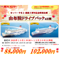 【関西発】せっつ・やまと就航5周年記念特別企画!紅葉が色づくベストシーズンの旅行に♪会員制ホテルに泊まる「由布院ドライブパック」販売開始!