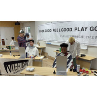 マンダムとメリケンバーバーショップが飯塚高校サッカー部を「部活ヘアサロン」で激励 [画像1: …