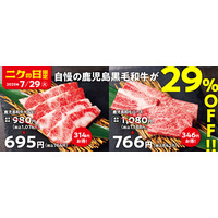 【焼肉の和民】毎月恒例の「肉の日」企画。7月29日の「ニクの日」は自慢の鹿児島黒毛和牛を使用した「鹿児島和牛カルビ」と「鹿児島和牛ロース」を29%OFFで提供します!!