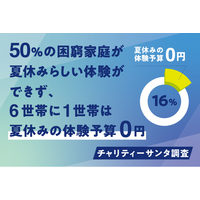 50%の困窮家庭が夏休みらしい体験ができず、6世帯に1世帯は夏休みの体験予算0円|チャリティーサンタ調査