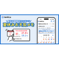 tenki.jpが小学生向け「夏休みお天気メモ」を夏季限定で提供~毎日の天気・気温を簡単確認、親子で楽しく記録をつけよう~