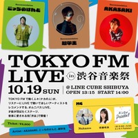 TOKYO FM リスナー感謝祭、今年も開催決定!第一部『TOKYO FM LIVE in 渋谷音楽祭』AKASAKI、こっちのけんと、超学生が出演!MC: Nakamu、安藤咲良