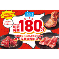 【大好評につき期間延長】焼肉食べ放題を「たっぷり3時間」楽しめる、平日限定のキャンペーンが8月7日まで延長決定!