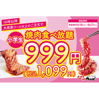 【一人あたり最大1420円割引】夏休みの締めくくりは、家族みんなで焼肉♪小学生の食べ放題料金が999円(税込1,099円)になるキャンペーンを開催!8/27まで