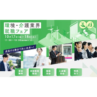 【東京都主催】東京都内の「環境」「介護」の関連産業から約110社が参加する合同就職説明会/面接会を開催します(10月17・18日、東京ドームシティプリズムホール)
