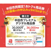 【愛知県半田市】プレミアム率20%!大好評につき「半田市プレミアムデジタル商品券」の第2次募集を開始します!