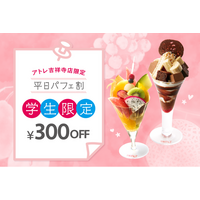 【タカノフルーツパーラー】学生限定「平日パフェ割」で対象のパフェが300円お得に。アトレ吉祥寺店で期間限定開催。