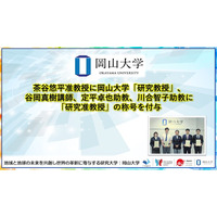 【岡山大学】茶谷悠平准教授に岡山大学「研究教授」、谷岡真樹講師、定平卓也助教、川合智子助教に「研究准教授」の称号を付与