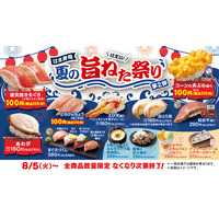 【はま寿司】直火焼きマグロやコーンの天ぷら握りを100円(税込110円)でご提供!「はま寿司 夏の旨ねた祭り 第2弾」開催!