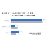 80.7%の27卒学生が夏期インターンシップに「参加」と回答。