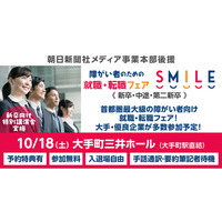 10/18(土)障がい者のための就職・転職フェアSMILE★東京・大手町にて28社が出展!昨年は求職者377名が参加【新卒・第2新卒・中途対象】≪朝日新聞社メディア事業本部後援≫