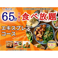 【秋の食欲を満たす人気企画!!至福の20分延長で食べ放題!!】9/30迄!!ニラックスブッフェで大人気の45分『エキスプレスコース』を「65分食べ放題」に拡大!充実の食べ放題を思う存分お楽しみください!
