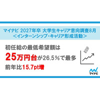 「マイナビ 2027年卒 大学生キャリア意向調査8月<インターンシップ・キャリア形成活動>」を発表