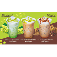 【bb.q オリーブチキン】秋の味覚をお届け♪爽やかなシャインマスカットとほっくり甘いマロンを楽しむ季節限定ドリンク「マスカット&マロン」シリーズ9月11日(木)より新登場!