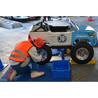 ロードサービス隊員の制服を着て、本物の工具を使ってタイヤ交換体験ができます。作業後には「子どもロー…