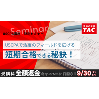 TAC株式会社(東京都千代田区、代表取締役:多田敏男)は、USCPA試験対策講座では短期合格を目指せる効率…