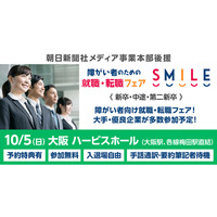 【大阪・梅田】10/5(日)障がい者のための就職・転職フェアSMILE≪朝日新聞社グループ主催≫★前回は110名が参加★【2027新卒/2026新卒・第2新卒・中途対象】大手・優良企業が参加
