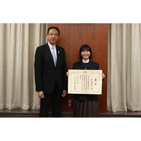 高槻市在住の高校1年生・阿見果凛さんが新俳句コンテストで最高位受賞を市長に報告