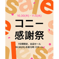 【最大74%OFF】抱っこ紐・ヒップシート・ベビー服がお得に! コニー感謝祭が10月30日(木)お昼12時からスタート