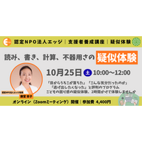 【読む・書くが苦手な子の特性を知る】40人に2~3人いる「ディスレクシア」啓発月間イベント。認定NPO法人エッジが、疑似体験/相談会/音声テスト体験会を10月25日・26日に実施します。