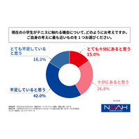 小学生の子どもにテニスを習わせているスポーツに関心の高い親の6割弱が、小学生のテニス体験機会は不足していると感じている!ノアインドアステージ株式会社が小学生の子どものテニス体験機会に関する調査を実施!