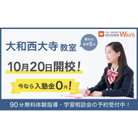 【奈良県初進出!】中高一貫校生のためのトータルサポート専門塾『WAYS 大和西大寺教室』、10月20日より新規開校!