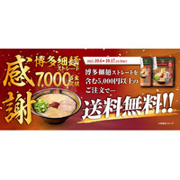 「一蘭ラーメン 博多細麺ストレート」が7,000万食を突破したことを記念し、期間限定で送料無料企画を実施…