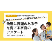【回答募集/匿名3~5分】発達に課題のある子を育てる家庭の実態調査~全国の声から「発達を後押しするヒント」を集めます/抽選でAmazonギフト券500円分を進呈~