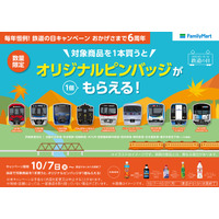 毎年大好評の10月14日「鉄道の日」に向けたファミリーマート×鉄道会社9社との合同企画が今年も開催決定!6年目となる今年は思わず集めたくなるオリジナルピンバッジがもらえる!