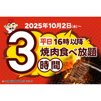 【焼肉食べ放題に革命!】じゅうじゅうカルビの食べ放題が、ゆったり過ごせる3時間にパワーアップ!ご要望にお応えし、ご利用時間を大幅拡大