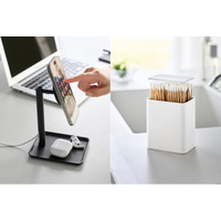 【山崎実業 新商品のお知らせ】 ポップアップ式の綿棒ケースと、マグネット式ワイヤレス充電に対応したスマートフォンスタンドが発売になりました。
