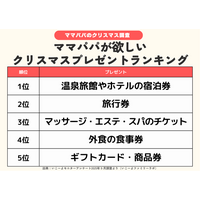 発表!「ママ・パパが自分のために欲しいクリスマスプレゼント」ランキング 2位は「旅行券」 1位は?「マッサージ・エステ・スパのチケット」は何位?/いこーよファミリーラボ調査2025