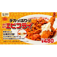 デカいは正義!重量2倍を実現、16周年記念トッピング「デカっ!ぷりっ!Bin!Bin!エビフライ」を11月16日(日)に発売