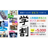 平日限定!11月17日(月)から2026年1月30日(金)の期間「東京ドームシティ まるごとパスポート」が学生割引で1,600円OFF!5,000円で人気施設が1日中お得に遊び放題
