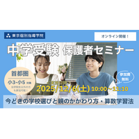 最新情報をつかんで合格のチャンスを広げよう! 中学受験保護者セミナーを12月6日に東京個別指導学院がオンライン開催