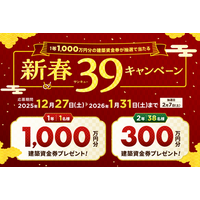 総額1.2億円超の建築資金券が当たる「新春39(サンキュー)キャンペーン」開催