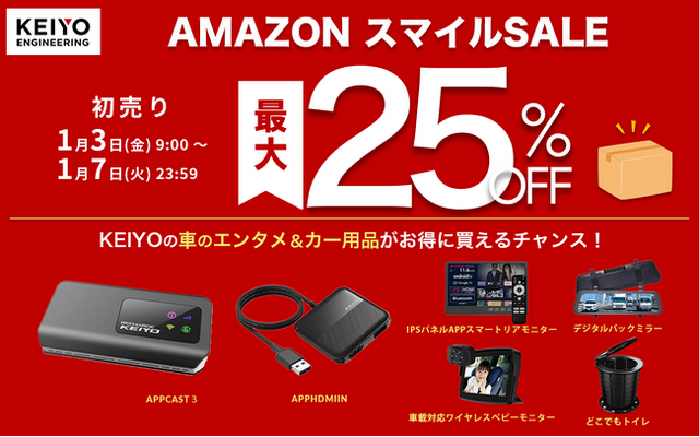 Amazonスマイルセールの初売りでは、KEIYOの人気カー用品が最大25%OFFの特別価格に!