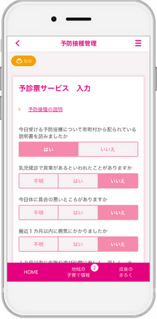 また、医療機関はワクチンごとの接種期間や前回からの接種間隔による接種判定をデジタルにより安全かつ効率よく確認することが可能です。さらに、自治体には医療機関から接種結果のデータが迅速に共有されるため、予防接種後の保護者や子どもの状況の確認を速やかに行うことができます。