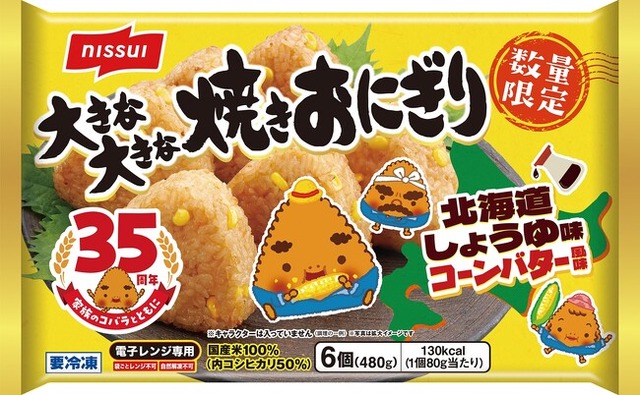 株式会社ニッスイ(代表取締役社長執行役員 浜田 晋吾、東京都港区)は、家庭用冷凍食品「大きな大きな焼きおにぎり」の発売35周年を記念して、「大きな大きな焼きおにぎり 北海道しょうゆ味 コーンバター風味」を1月1日より数量限定で発売しました。