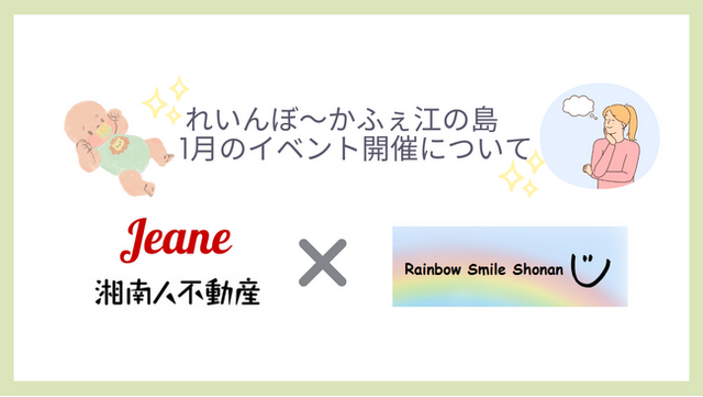 湘南人不動産を運営する株式会社ジーン(本社:東京、代表取締役社長:林田洋明、以下当社)が協業する「れいんぼ~かふぇ江の島(代表:鈴木理恵)」は、湘南人不動産湘南支店において子育てに役立つイベントを随時開催しています。